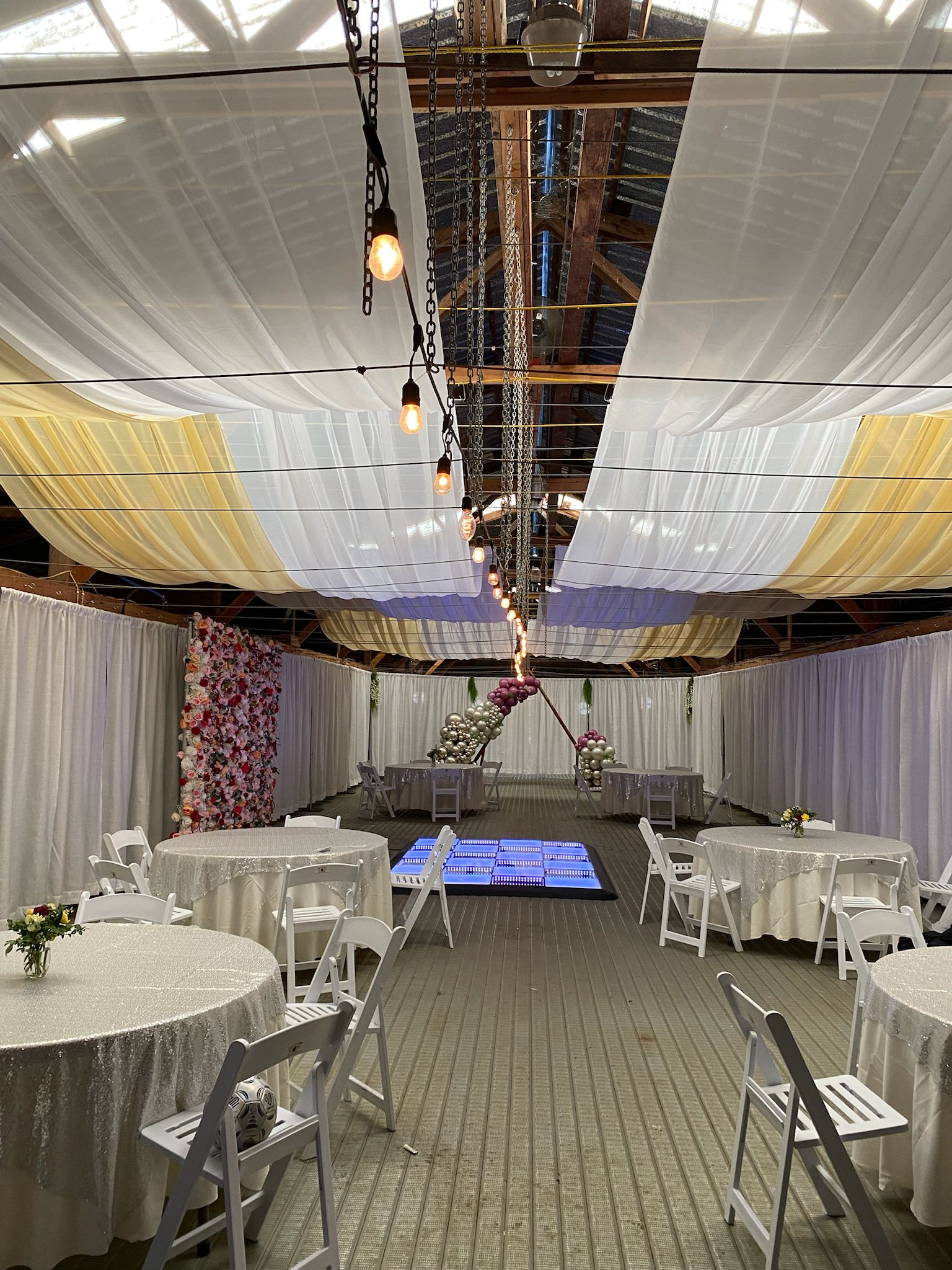 We specialize in transforming ordinary venues into breathtaking experiences. With our ceiling draping, your event will shine with elegance, charm, and sophistication. From weddings to quinceañeras and corporate celebrations, we create a magical atmosphere where every detail feels unforgettable. Let us turn your vision into a masterpiece suspended above your guests.