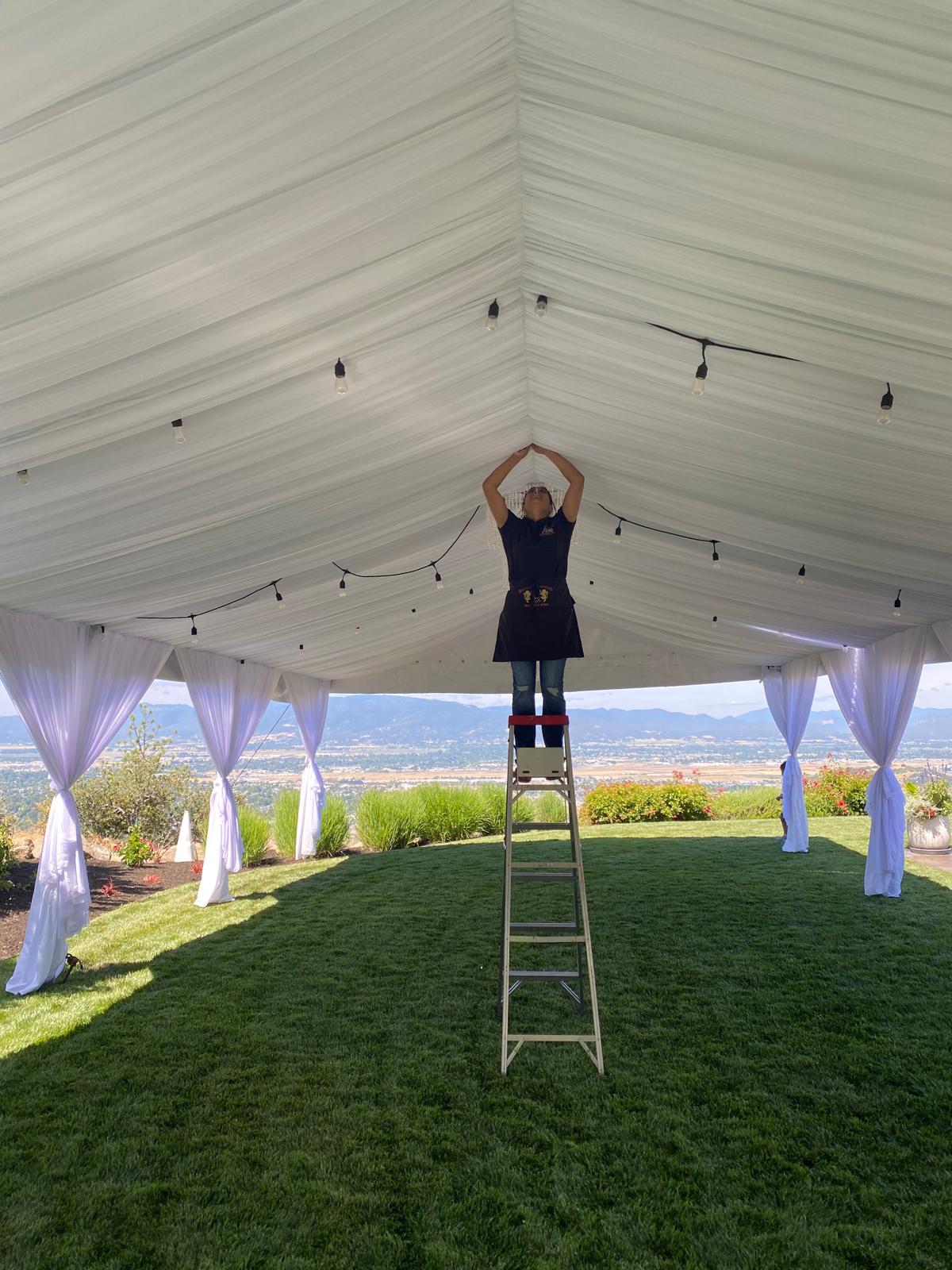 Our tent draping service transforms simple structures into stunning, elegant venues. With flowing fabrics and custom designs, we create a warm and sophisticated atmosphere that elevates weddings, quinceañeras, and all special occasions. From intimate gatherings to grand celebrations, we turn every tent into a breathtaking space where unforgettable memories are made.